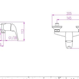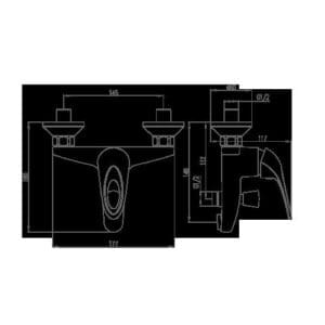 Slavina za kadu “Udaljenost između centra ulaza: 145 Udaljenost od izlaza baterije za kadu do zida: 112 Kada Udaljenost od izlaza baterije za kadu do zida: 146 Navoj: G1/2” ...