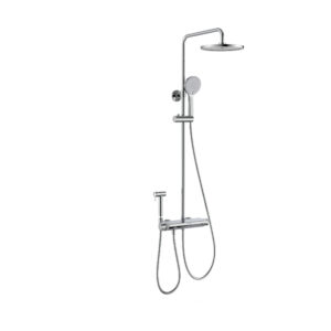 “Gornji tuš: 11 inča Ručni tuš: 5 inča Ulazni razmak: 150±10mm Vanjski navoj: G1/2B Čelična cijev: ravna Φ25mm+ zakrivljena Φ21mm Platforma za skladištenje: 400*140 mm Ulaz vode do najviše ...