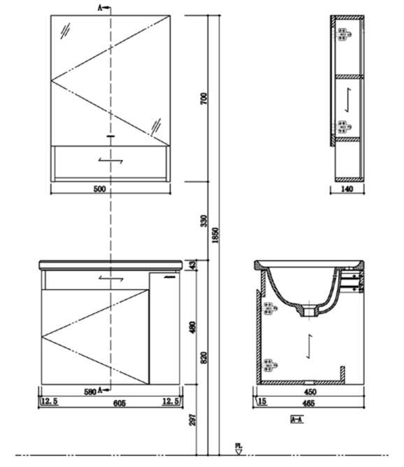 “1、Glavni ormarić: jednokrilna vrata, ormarić s ogledalom: jednostruka vrata + donja polica