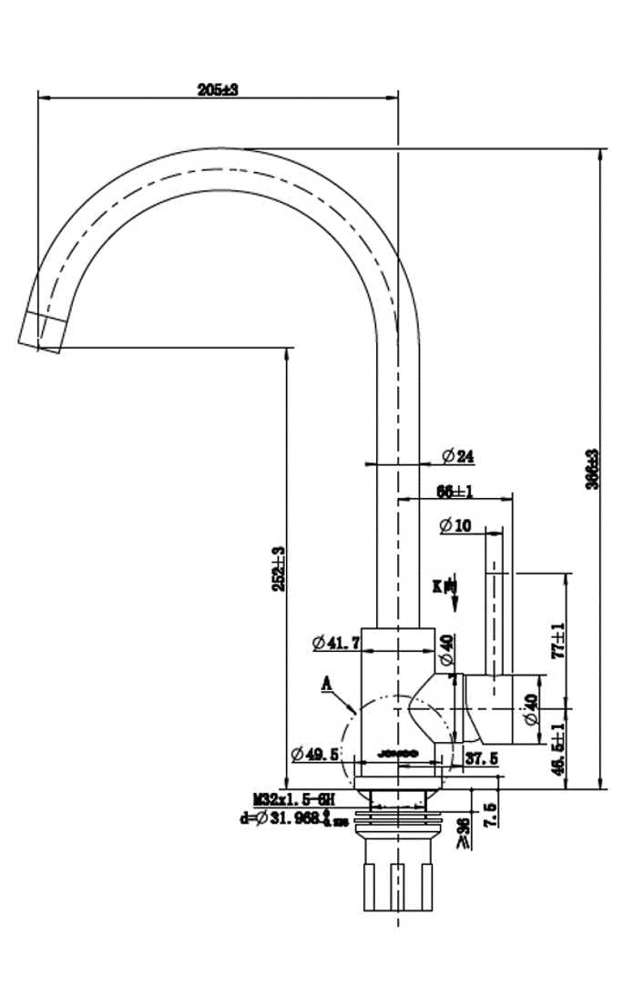 “Visina izljeva: 252 mm